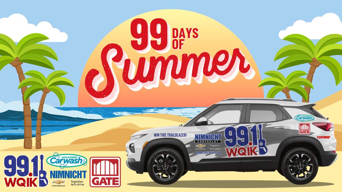 The day of the Trailblazer giveaway, each "key winner" will check in at the 99.1 WQIK table. WQIK will have a guest list of participants. You may not enter day of the contest. Key winners will present your photo ID and WQIK staff will drop your name into the 99.1 WQIK roll cage to participate in a reverse drawing. Your name will be written on a card, you will not drop your ID into the roll cage. At the beginning of the promotion, 10am, a member of either the Nimnicht Chevrolet or WQIK staff will draw the first name. That entrant is removed from the contest and then we will draw the next, and so on. The last THREE names left in the roll cage will then be able to choose their own key fob. One key will open and start the vehicle. That person with the working key, will be the grand prize winner. There will be one grand prize winner. Again, once the grand prize winner is announced, the contest will end and s/he will be asked to provide her/his VALID ID and PROOF OF INSURANCE and MUST be able to pay ALL TAX, TITLE AND LICENSE or FORFEIT THE PRIZE (ie, Chevrolet Trailblazer). Approximate Retail Value (“ARV”): $26,385.00. Winner of the vehicle does not need to pay the tax title or fees the day of, but cannot take the vehicle until they do so. WQIK will cover costs to remove our logos from the vehicles, but winner will be responsible to taking the vehicle to 201 Wraps to do so.