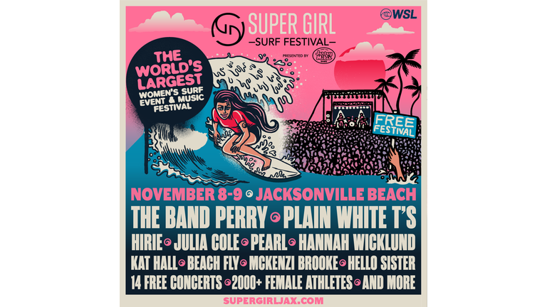 The 5th annual Super Girl Surf Festival presented by Jersey Mikeβs, will return to Jacksonville Beach, FL from November 8 β 9, 2025. It's the largest women's surfing event in the world! This three-day event promises thrilling surfing competition, more than 2,000 female athletes competing in 10 sports, and a vibrant festival village featuring female-focused vendors, activities, and fantastic entertainment.
