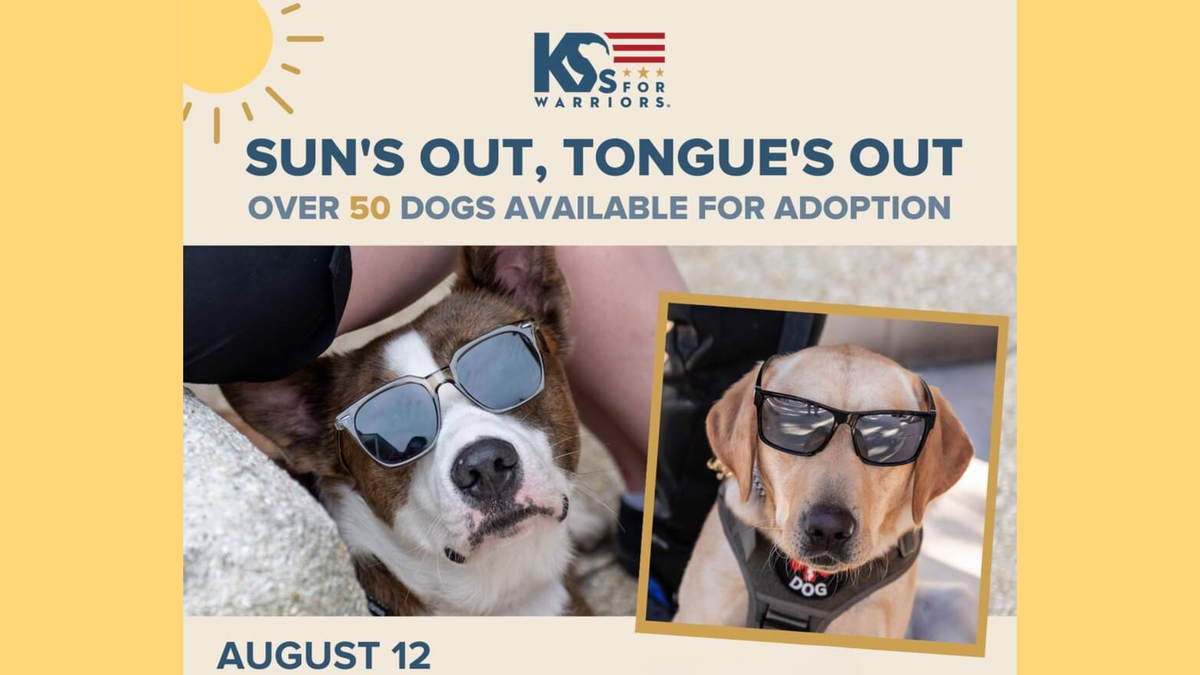 Join K9's For Warriors on August 12, 2023 for our Sun's Out, Tongue's Out — K9s For Warriors Adoption Event at the Seawalk Pavilion!