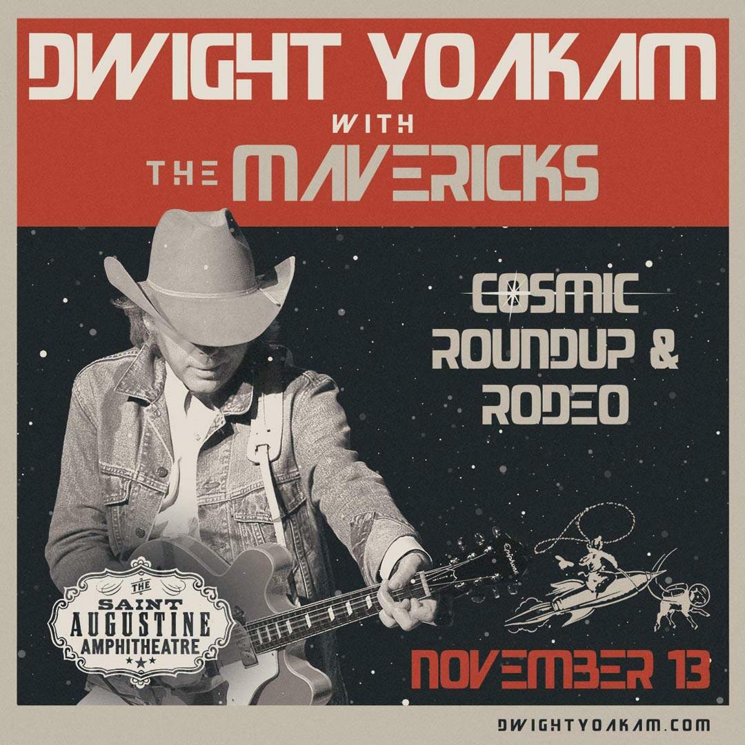 Dwight Yoakam is coming to the St. Augustine Amphitheatre with The Mavericks on November 13th for the Cosmic Roundup & Rodeo Tour. Tickets on sale HERE
