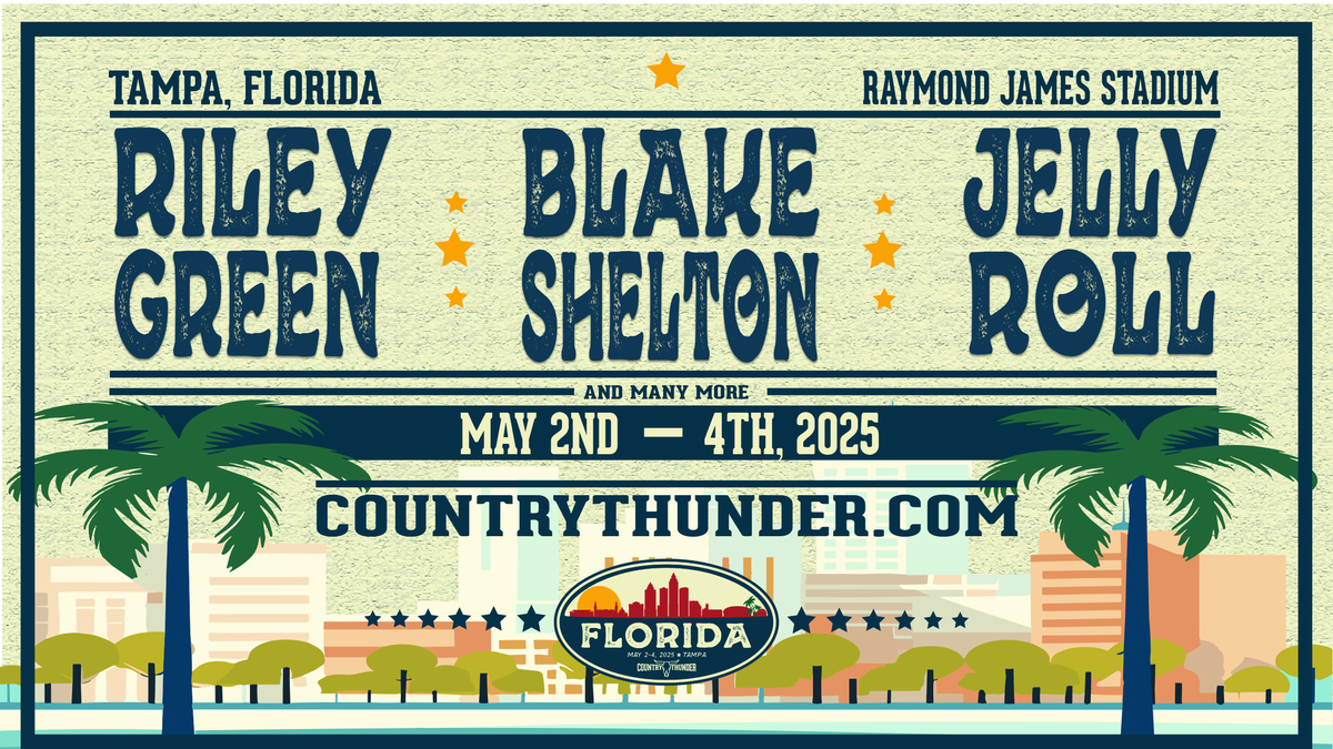 Get ready, Tampa! Country Thunder Florida is making a move to a brand-new home in 2025. After years of unforgettable memories in Kissimmee, the festival is heading to the iconic Raymond James Stadium in Tampa for an even bigger and better experience. Set for May 2 - 4, 2025, fans can expect the same high-energy performances and world-class lineup, now onsite at one of the premier venues in the state.